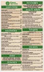 I used the green and orange of the Irish flag as my color palette and increased the size of the logo to show off the intricate detail instead of hiding it in the corner. I also increased the margins and contrast to make the menu easier to read.