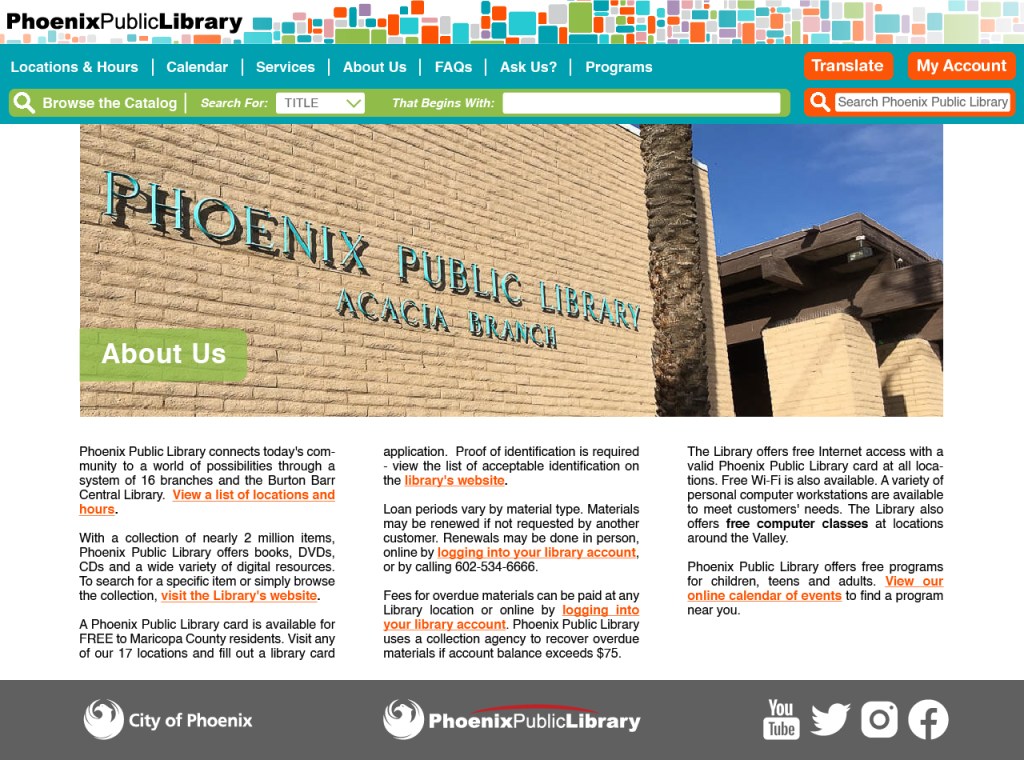 - Redesign of Home and About Pages of the Phoenix Public Library Website based on user testing