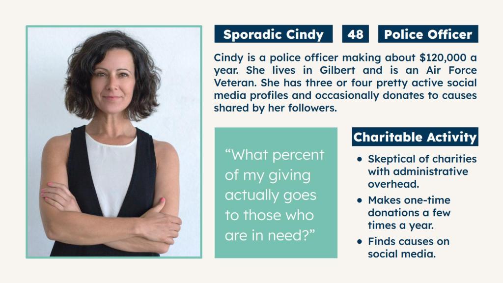 To get a better understanding of Southeast Valley Alliance’s target audience we a created a survey about donation habits and published it to several Queen Creek and east Valley Facebook groups targeted at our key demographics.
