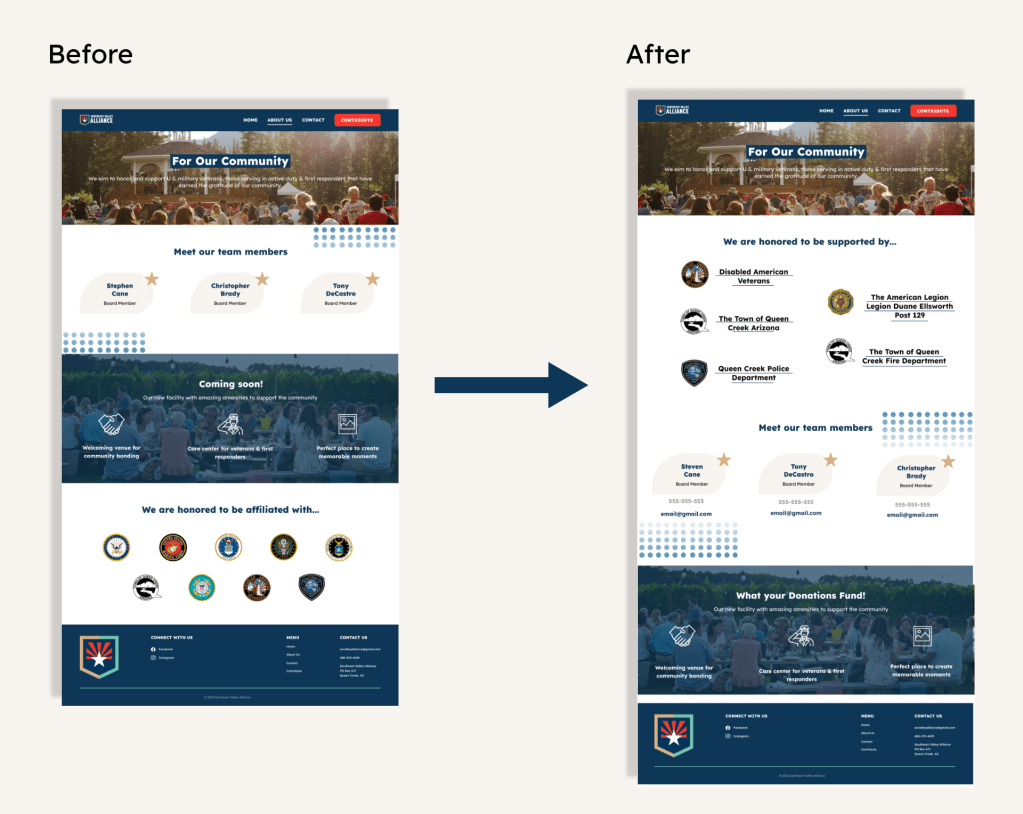 After presenting our updated designs to the Alliance board, and adjusting it to meet their requests, we implemented the final design in Squarespace.